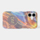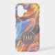 The abstract design on this phone case is infused with light and colour! Ribbons of tangerine orange, gold, blue, grey and even a touch of green flow across the surface. Your two letter monogram is at the centre of a semi transparent circle which is lined in shiny gold. This case almost glows!
