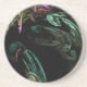 I'm not sure how much moisture these will soak up, haven't had a chance to try them out, but they look good and I like the cork backing. The printing is fine ~ and really looks cool with an artisan's hand made "Hurricane Martini" glass sitting on top of my painting (on the coaster) in my studio.