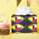 A fish symbol with blocks of colour is a unique graphic design for fish lovers, and cooks at birthdays and holidays.