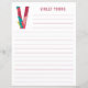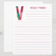 A fun and funky abstract floral design featuring letters of the alphabet. Lined paper is ready to write.