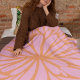 Abstract floral burst pattern pastel orange & pink fleece blanket