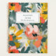 Abstract colourful floral planner for 2025 with a monthly overview and weekly pages for 12 months of the year. Personalise it with your name or any message on the front cover and choose between a soft or hardcover, and a gold, black, or white spiral.