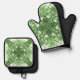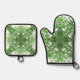 Abstract Floral Pattern In Black Green On White Oven Mitt & Pot Holder Set