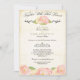 This elegant, vintage, abstract floral wedding invitation is perfect for the modern or traditional wedding. The peach, pink, rose, and gold watercolor roses and ranunculus on a subtle parchment background, give this bridal invitation a splash of colour and sophistication. A contemporary mix of typography and flourishes add a simple touch of special class. You can easily customise and personalise this flowery wedding invitation by using the given template. Don't forget the coordinating rsvp cards, postage, and reception cards. Feel free to contact the designer with any special requests.