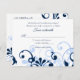 The text and background colour on this navy blue, pale blue, and white wedding reply (rsvp) card is fully customisable. To change the text use the personalise option. For more extensive changes to the card including changes to the font, font colour, background colour, or text placement, use the customise option. This is a lovely and elegant response card for a spring or summer wedding. Although currently customised for a wedding, this reply card would also work well for a variety of other special occasions. This card is currently set to print on metallic ice white paper, but also looks very nice on any of the other paper types. You could also change the wording on this card to make it a direction, reception, and/or accommodation card.