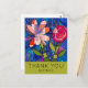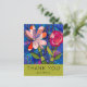 A fun abstract designed background with 2 whimsical flowers, in bright, bold colours. You can customise the message and the colour label under the message.