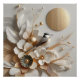 Discover "Abstract Florals & Bird with Sun," a mesmerising digital art print that combines 3D-rendered elements with illustration and painting techniques. This captivating artwork features soft, abstract floral forms intertwined with a graceful bird perched on textured wood. In the background, a glowing sun shines with subtle gold tones, blending beautifully with a palette of white, beige, and grey. The fusion of organic shapes and elegant colour contrasts creates a harmonious composition, offering a modern yet timeless piece of art that evokes serenity and sophistication.