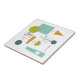 This fabulous mid century modern ceramic tile features squares, circles, triangles, and lines in the colours of turquoise, orange, green, blue, and black - just like a flowchart! This will make a funky addition to your tiling project. It's also great for those who love graphs and charts.