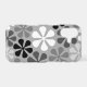 A fun and funky style abstract flower surface pattern design in black, white and greys.