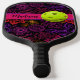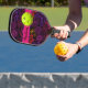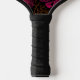 The other Pickleball ladies are sure to admire this dramatic-looking abstract floral and butterflies pickleball paddle with assorted flowers and butterflies in pink, red, yellow, and purple on a black background with a bright pink and purple band and pickleball on it that is personalised with your name on the front and customisable text on the back that says, "Pickleball Princess" on it that can be changed to say whatever you want it to. Email niteowlstudio@gmail.com with any request for changes.