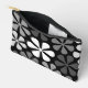 A fun and funky retro style abstract flower surface pattern design in white and greys on a black background.