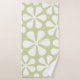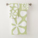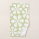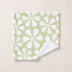 A fun and funky retro style abstract flower surface pattern design in white details on a lime-green background.