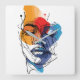 This striking artwork, "Abstract Fluid Line Face Art," is a modern representation of human expression through abstract forms and vibrant colour combinations. The piece portrays a face drawn with fluid, flowing lines that capture both motion and emotion. The lines, seemingly spontaneous and dynamic, curve and intertwine to form the facial features while leaving some elements open to interpretation. The deliberate use of abstract shapes and splashes of colour creates a unique visual experience where the orange, red, and deep blues offer a balance between warmth and coolness, symbolising a range of emotions.