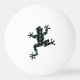 a decorative design of a little frog or toad featuring an ornamental mandala circle pattern in green and black colors on a ping pong ball.
