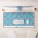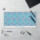 This desk mat features an eye-catching design of abstract geometric aqua blue and purple square tiles. Its unique watercolor effect makes it a stunning, modern addition to any workspace and the white band with name at the bottom of it further enhances its aesthetic appeal. Its main focus is the beautiful watercolor pattern that will definitely make a statement in any room. Its vibrant colours and geometric shapes will bring an interesting and bold touch to your desk.