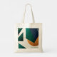 Abstract Geometric Art Modern tote bag minimalist with overlapping triangles and circles in jewel tones (emerald, sapphire, amber). Metallic gold accents and ‘Find Your Balance’ in tiny font.