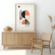 This striking mid century style wall art features a harmonious composition of geometric shapes that are visually balanced but not symmetrical. Created through AI design, it blends dynamic, freeform shapes with natural textures like wood and the sea, offering a fusion of modern abstraction. Subtle colour shading enhances each shape, adding depth and a visually pleasing aesthetic.