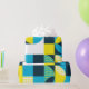 Abstract geometric background with squares, triangles, rounds and crosses a 3D effect. Colourful modern pattern