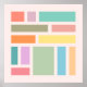 A minimalist modern abstract geometric art design of rectangular blocks in pastel colors on a light beige background.