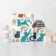 Geometric cats in a pleasing palette of turquoise and goldenrod on an off-white background.