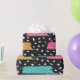This modern and stylish wrapping paper features a bold abstract pattern of geometric dots and colourful stripes on a black background. The design is perfect for adding a touch of contemporary flair to your gift wrapping and is sure to impress your friends and family. Made with high-quality paper, this wrapping paper is durable and easy to use.