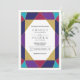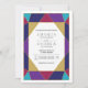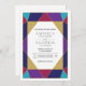 Abstract geometric jewel gemstone tones modern wedding invitation. This trendy contemporary wedding invite features triangles in jewel tones: navy blue, violet purple, ruby red, turquoise blue and gold. The triangles have FAUX printed outlines that look like glitter or gold foil.