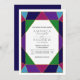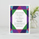 Abstract geometric jewel gemstone tones modern wedding invitation. This trendy contemporary wedding invite features triangles in jewel tones: navy blue, violet purple, ruby red, turquoise blue and emerald green.