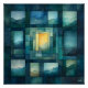 This stunning abstract geometric art piece presents a serene landscape of layered mountains in shades of blue, green, and gold, centred around a glowing sunlit scene. The intricate framing and soft colour gradients create a sense of depth and tranquillity, making it an ideal addition to modern home or office spaces. Perfect for lovers of abstract and nature-inspired art.