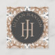 An earthy boho style monogrammed logo geometric pattern background business card design with muted brown and charcoal grey abstract shapes. A dynamic decorative typographic monogram.