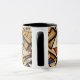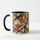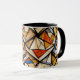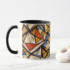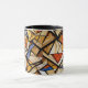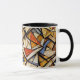 This is a Habatour Creations coffee mug, decorated with a modern abstract geometric digital pattern design that mimics wood texture