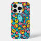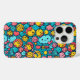 This is a Habatour Creations iphone case, decorated with an authentic modern abstract geometric digital pattern design with cute faces