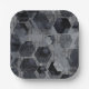 Abstract geometric textured pattern, black and grey background. Black, grey geometric shapes, honeycombs on a light grey striped background.