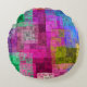 Abstract geometric pattern, blue, pink, modern round cushion