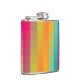 The flask itself is fine. It’s a cheap flask, obviously bought in bulk, however am prepared to overlook that. Given that it is a personalized item, I would have liked to have seen gift boxing instead of the generic packaging. Terrible printing, and/or quality. It’s a cheap, tacky vinyl. It is not cut straight and is also applied in a way that it is overhanging the bottom, causing the glue to catch on items and it will eventually roll and tear, damaging the wrap.