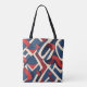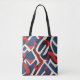 Abstract geometric pattern with overlapping shapes in red, navy blue, and beige colorstote bag