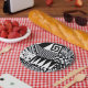 abstract geometric shapes black white pattern hand paper plate