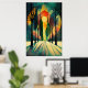 This colourful abstract geometric sunset poster is a stunning piece of art that will bring a pop of colour and modern style to any space. This detailed design features a beautiful abstract geometric design in hues of orange, red, green, and blue, with elongated shadows that create a sense of depth and dimension.