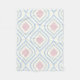 Abstract geometrical, blue, pink and off white fleece blanket