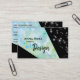 ** Here you have a pretty sweet elegant popular modern cool trendy chic and feminine as well as masculine, black and turquoise blue water colour flower image as part of a black and the turquoise black colour block business card that also has touches of glitter and sparkle. The font is black which really pops overlaid on the floral flower chunk of geometric sections. The card states the profession as " Graphic Artist" which can be easily converted and customised with your name and profession.**