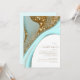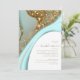 This design set, with it's abstract pattern of flowing ripples and veins of glittering gold, brings to mind eye-catching rock formations, flowing sand dunes, and gentle ocean waves. The striking colours of sea and sand for this set adds to the appeal. The Bridal Shower invitation shown here has all the above with a template to easily add your event details. Search ID903 to see other colour choices and coordinating pieces for this unique wedding collection.