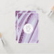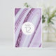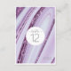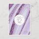 This wedding design set, with it's abstract pattern of flowing ripples and veins of glittering plum, brings to mind eye-catching rock formations and sparkling gems. The striking colour palette in shades from lilac and lavender to soft periwinkle adds to the appeal. The coordinating table number card shown here has all the above with a white label to add your table numbers. Easily add your names, numbers and wedding date using the provided template. Search ID903 to see other colour choices and coordinating pieces for this unique wedding collection.