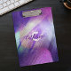 Trendy personalised clipboard design featuring an abstract backdrop with faux glitter elements in neon magenta colour. The text is fully customisable. To change it use the Personalise option. For more changes, such as changes to the font, font colour or text layout, use the Edit design tool option.