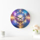 Bring a touch of cosmic tranquillity and vibrant energy to your space with this stunning wall clock. Featuring abstract glowing symmetrical digital artwork, the design centres around an intricate, radiant lotus or mandala shape. Ethereal flows of blue, purple, and gold light emanate outwards, creating a sense of depth and movement against a dark, cosmic-inspired background. This unique timepiece is more than just a way to tell time; it's a piece of spiritual and artistic expression that adds a focal point to any room. Perfect for meditation spaces, living rooms, or offices, it evokes feelings of peace, harmony, and transcendence. A beautiful blend of modern digital art and ancient spiritual symbolism.