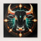 Modern artistic depiction of a glowing Taurus Zodiac with intricate geometric designs, vibrant colours, and futuristic elements. Symbolism includes strength, precision, and profound visual impact.