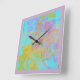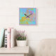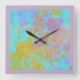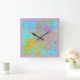 Abstract Gold Butterfly Aquamarine Violet Square Wall Clock