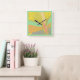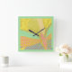 Abstract Gold Butterfly Jade Pink Square Wall Clock