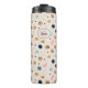This seamless abstract pattern thermal tumbler features a dynamic mix of textured gold dots and shimmering brushstrokes, paired with playful accents in teal, pink, and dark blue. Set against a soft, neutral background, the design exudes a modern, artistic vibe with a hand-drawn, expressive feel. Perfect for bold, creative aesthetics with a touch of elegance and sparkle.