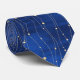 An outstanding design of curved gold lines and gold dots on a textured, midnight blue outline makes and elegant and professional necktie.