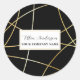 a black sticker with a design of thin, interconnected gold lines. The lines curve and bend in an abstract pattern.