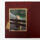 Elegant statement holiday design featuring single-photo template edged in gold hammered style texture border on a dark Christmas-red artisan background with abstract brush stroke of gold glitter sparkles with editable text fields. Panels feature blank element with gold border on complementary red background with text fields and additional photo templates.